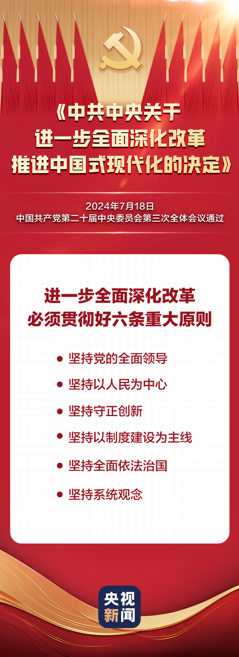 中國(guó)共產(chǎn)黨第二十屆中央委員會(huì)第三次全體會(huì)議,于2024年7月15日至18日在北京舉行。全會(huì)最重要的成果是審議通過《中共中央關(guān)于進(jìn)一步全面深化改革、推進(jìn)中國(guó)式現(xiàn)代化的決定》。《決定》共15部分、60條,分三大板塊,一文速覽: