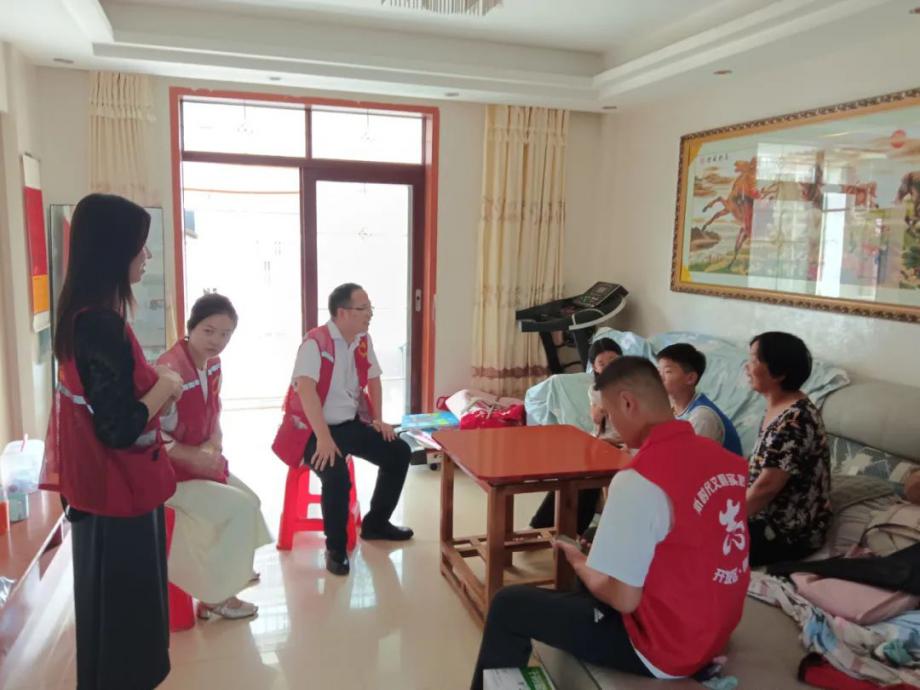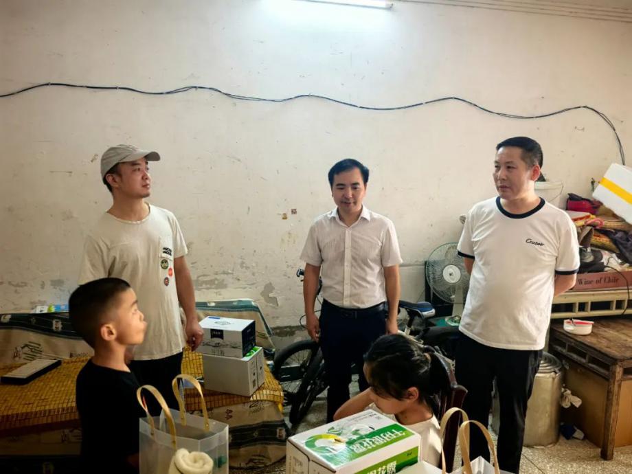 宣講結(jié)束后,胡曉明帶隊走訪慰問社區(qū)留守困境兒童,為他們送去金銀花露、牛奶、清涼禮包等生活物資,詳細了解他們的家庭情況,鼓勵他們好好學習,叮囑社區(qū)干部要努力幫助他們解決生活困難。