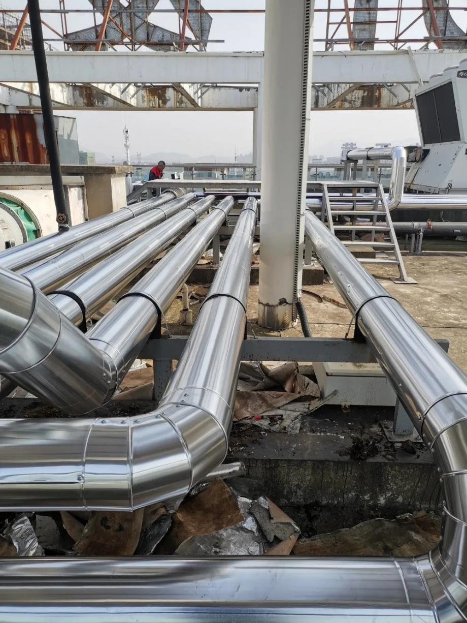 為此,高新物業(yè)公司認真貫徹落實《綠色高效制冷行動方案》,及時維修、更換該樓中央空調(diào)循環(huán)水管保溫棉外露面,并加裝鋁制金屬保護殼,在節(jié)約能耗的同時,還能有效避免凝水滲漏。