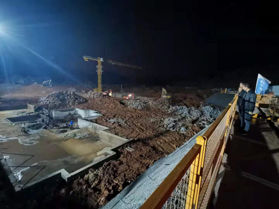 4月11日晚8點,華新小鎮(zhèn)項目現(xiàn)場機械轟鳴、人聲鼎沸,工地上下盡是忙碌的身影。