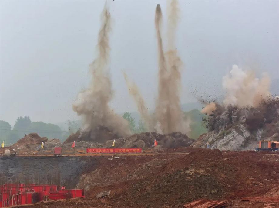 據(jù)勘察,現(xiàn)場(chǎng)地質(zhì)條件復(fù)雜罕見,需爆破石方總量約10萬立方米。為此,該公司積極組織各參建單位和有關(guān)專家,通過多輪現(xiàn)場(chǎng)踏勘和集中研討,最終確定采用機(jī)械鉆孔填充炸藥的方式,分15次實(shí)施爆破,本次石方爆破量約8000立方米。