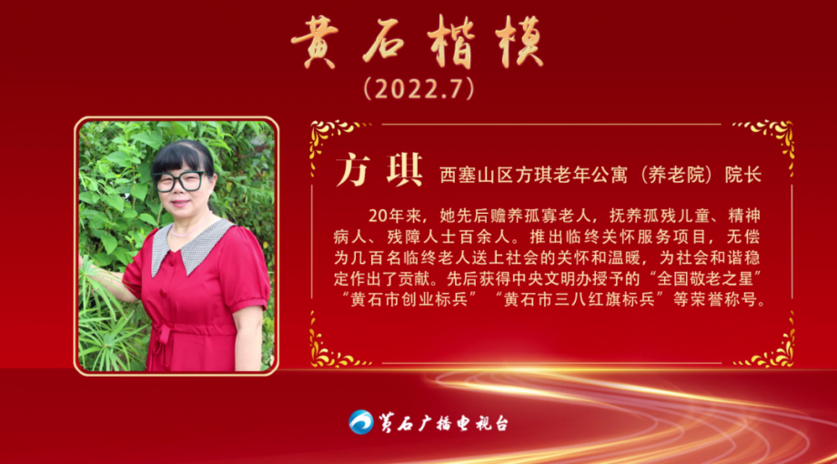 先后獲得中央文明辦授予的“全國敬老之星”“黃石市創(chuàng)業(yè)標(biāo)兵”“黃石市三八紅旗標(biāo)兵”等榮譽(yù)稱號(hào)。