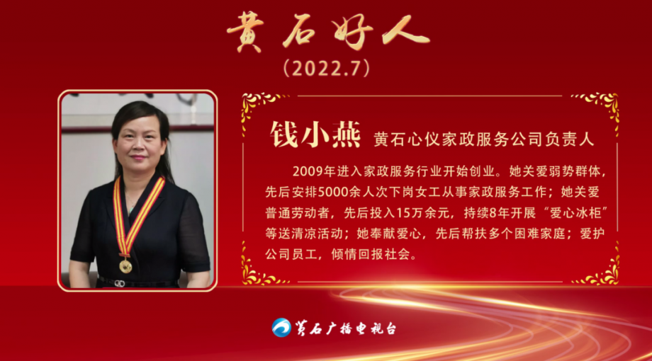 錢小燕,女,48歲,黃石心儀家政服務(wù)公司負(fù)責(zé)人、中共黨員。