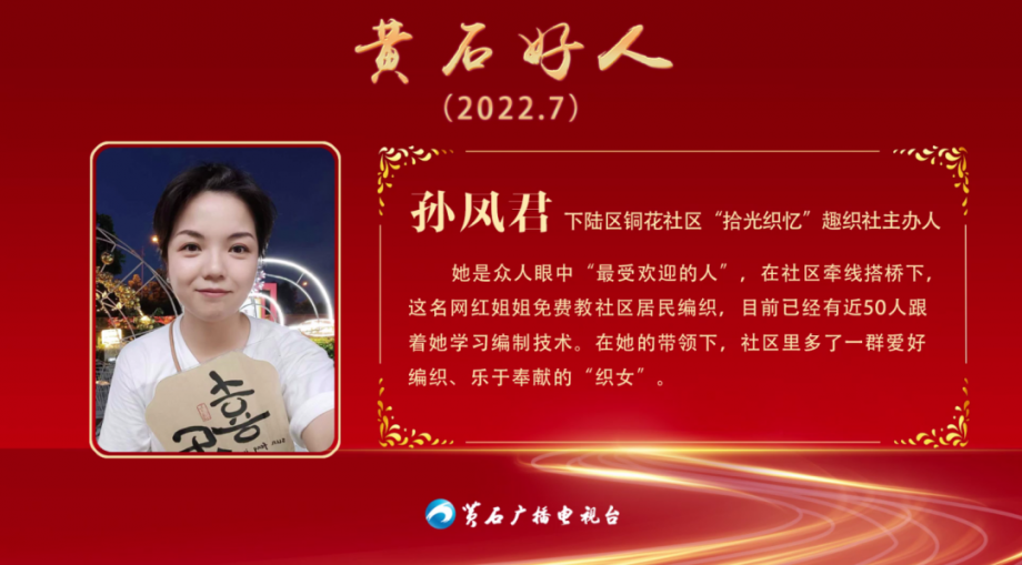 孫鳳君,女,36歲,下陸區(qū)銅花社區(qū)“拾光織憶”趣織社主辦人。