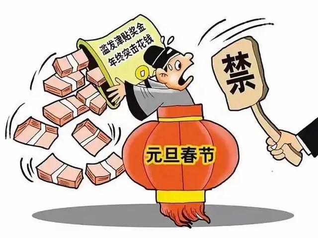 嚴(yán)禁借節(jié)日之機(jī)違規(guī)發(fā)放獎(jiǎng)金、津貼、補(bǔ)貼、實(shí)物等福利或年終巧立名目突擊花錢(qián);嚴(yán)禁違規(guī)舉辦各類(lèi)年會(huì)、團(tuán)拜會(huì)、聯(lián)誼會(huì)、慶典等活動(dòng);